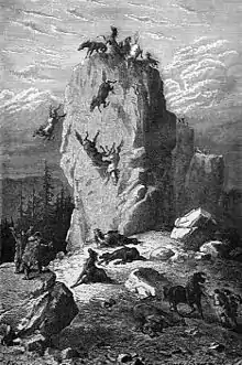 The Solutré horse hunt, from an illustration of "primitive man" by L. Figuier, 1876