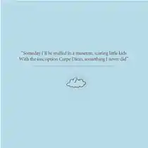 The Swedish release showed a sky blue cover with the words, "Someday I'll be stuffed in a museum, scaring little kids / With the inscription Carpe diem, something I never did". The songs on the EP can also be found on Lekman's 2005 release, Oh You're So Silent Jens.
