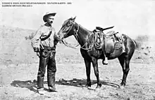 The Rocky Mountain Rangers were one of the volunteer militia units raised in Canada's North West in response to the 1885 North-West Rebellion. It was a body of mounted irregulars, mostly cowboys and ranchers from the area around Fort Macleod (District of Alberta), the headquarters of the North-West Mounted Police (NWMP) at the base of the foothills of the Rocky Mountains, about 150 miles (240 km) west of Medicine Hat (in what was then the District of Assiniboia).[1] This unit is not to be confused with the present-day Canadian Army Reserve unit The Rocky Mountain Rangers of Kamloops, British Columbia. Rather, it is the ultimate ancestor of the South Alberta Light Horse (SALH).