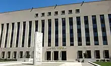 • Trylon of Freedom (limestone, 1954), C. Paul Jennewein, sculptor, Morigi, carver, Vincent Tonelli, contractor.[9] The three sides of the freestanding column represent the three branches of the federal government.
