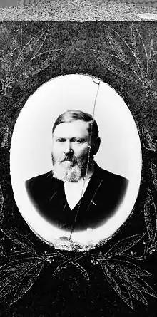 Another example of old graveyard custom is teacher Chr. Johansens gravesite from 1897. Here a black and white photo of Chr. Johansen is embedded into the gravestone. This is in contrast to the picture-free gravesite norm in Denmark today, even though this is not the case several other places in the world, where photos of the deceased can be a central part of a gravesite.[1]