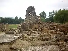 The beginning of archaeological investigations of the Roman ruins began in 1994, and was followed by similar projects in 1995 and 1996 under the Fundação Cidade de Ammaia;[5] there was a topographic survey and excavations were done in four locations, which also involved cleaning, studying and conservation: the Porta do Arco, Forum and Temple, Quinta do Deão building and the Forum baths. Since 2007, supervision of scientific research was handled by the University of Évora.[2] The site of Ammaia has been chosen as "open-lab" of the European funded project Radio-Past,[6] and it is now used as test-site for the integration and innovation in non-destructive approaches to complex archaeological sites (surface artifacts collections, geophysical and geo-archaeological survey, remote-sensing and aerial photography).[2]