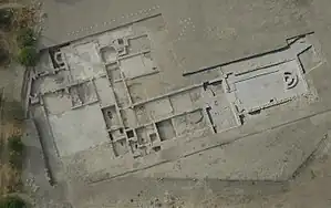 The excavated area is of a residential villa (or pars urbana) but from aerial photography and geophysics, a site located just 1.5 km away in the Sedia d'Orlando area was probably the agricultural part (pars rustica) of the villa. Several buildings including a three-winged porticoed building, a warehouse with dolia, a duct system and a series of furnaces could have been for the storage of products with an adjoining port on the Carapelle river.[9]