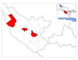 The district consists of 2 cities (Romitan, Gazli), 3 urban-type settlements (Qoqishtuvon, Xosa, Yuqori G'azberon) and 6 rural communities (Bogiturkon, Kurgan, Kyzylarvat, Romitan, Chilangu, Shurcha).[1]