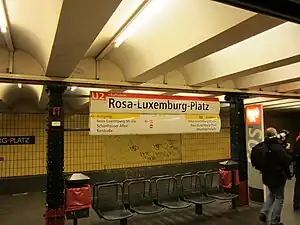 Rosa-Luxemburg-Platz is a Berlin U-Bahn station located on the U2. It was formerly called Schönhauser Tor and is located at the foot of Schönhauser Allee, at the corner of Torstraße. The color of the station is yellow.[2]