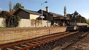 ![]() North-east bound view of the station building and platform in September 2017 | |||||||||||