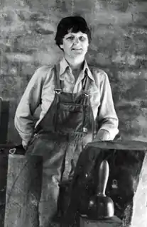 After returning to Adelaide in 1953,[2] Madigan taught pottery, painting and sculpture at multiple schools and the School of Art from the 1950s to the 1960s.[1][6] She completed her first sculpture upon her departure to Australia in Torso in 1954 as part of her desire to understand and articulate the human body.[1] Madigan conceived and designed the St Mark for the Downer fountain at the St. Mark's College, North Adelaide in 1964 and then Yellow Christ and the limewood Eingana that coalesced Aboriginal Australian and European religious and spiritual iconographies four years later.[2] She moved back to Sydney in 1973,[11] and began to teach sculpture at the East Sydney Technical College and at the Sculpture Centre.[1] During this time, Madigan developed an interest in assemblage and collage with a wooden machine before returning to wood carving and stone carving.[2][3]