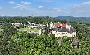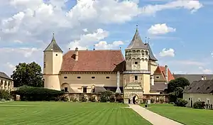 Rosenburg is a castle in the municipality Rosenburg-Mold, Lower Austria, Austria. Rosenburg is on a cliff above the valley of the River Kamp at an elevation of 345 metres (1,132 ft) above sea level.[1] It is one of Austria's most visited Renaissance castles. It is situated in the middle of a nature reserve - the Naturpark Kamptal[2] - which adds to its appeal. There are various castles and fortifications in Austria and Germany that bear the name "Rosenburg", but if people use the term without further specifications, it may be understood that they refer to this site in Lower Austria. The well-known Austrian folk song "Es liegt ein Schloss in Österreich" ("There is a castle in Austria") is often assumed to refer to the Rosenburg.