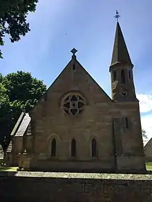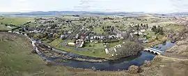 The Town Hall is a neo-classical style late-Victorian building. The adjoining Council Chambers is a timber building with a stone façade. The Post Office was completed in 1889[16] and has a verandah with twin cast-iron columns. The schoolhouse is a Victorian Rustic Gothic building with random rubble sandstone walls.[17]