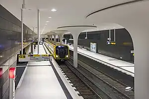 The station has been built using cut and cover construction. Following construction of the 32 meter deep slurry walls, it was topped with an HDI sole lid.
