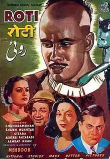 Roti (transl. Chappati or Flatbread) is a 1942 Indian Hindi film directed by Mehboob Khan. The movie was anti-capitalist.[1] This was Mehboob Khan's last movie before he set up his own production house.[2] The cast included Chandramohan, Sheikh Mukhtar, Sitara,Akhtaribai Faizabadi and Ashraf Khan.