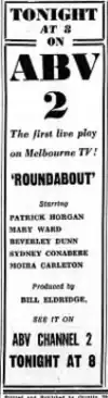 - ↑ "Drama, Interviews "Live" on ABV-2". The Age. 3 January 1957. p. 15.