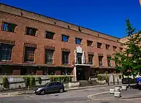 Royal Hill, Greenwich is a mainly residential street, approximately 0.7 km (0.4 mi) long, in Greenwich in South London.[1] It runs uphill off Greenwich High Road in a southwards curve and then westwards to meet Greenwich South Street. At the northern end of the road is Greenwich Town Hall, a 1939 Art Deco building designed by Clifford Culpin.[2] A number of Georgian era houses are located along the road. The Pevsner Guide describes much of the road as "the usual suburban expansion" which was "filling in between the more scattered eighteenth century houses".[3] Royal Hill was once the name of the entire hill rather than just the street, and so other roads in the area are historically referred to as Royal Hill, including Point Hill which ascends south towards Blackheath.