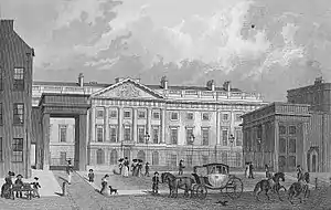 Designed in 1805 by James Johnson, the building was constructed between 1807 and 1812 by Robert Smirke after Johnson died, having never seen his design realised. In honour of both architects, the building was named the Johnson Smirke Building.[101][102] Aiming to increase mint production, the building was designed for multiple purposes including space for new mint machinery, a bullion store, the mint's office and apartments for mint officials.[103]