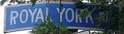 A sign for Royal York Road in Mimico, near its southern terminus.