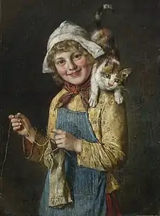 The influence of Leibl on Hirth's work was substantial. Even when Leibl was influenced by Gustave Courbet that, in turn, influenced Hirth. And, despite Hirth's discovery of Frans Hals and the obvious influence on his work, his paintings after the dissolution of the Leibl-Kreis are generally considered to be less inspired than those done before. For most of his life, he supported himself by painting portraits,[1] which occasionally rise to the quality of his early work. He later moved to Miltenberg, where he died, aged seventy. Many of his works can be seen in the Municipal Museum of Miltenberg.