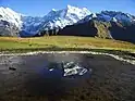 Clockwise from top-left: Kedarnath Temple, Confluence of Alakananda and Mandakini at Rudraprayag, Chaukhamba at Bodha Madhyamaheshwar, Hills at Chopta, Tungnath