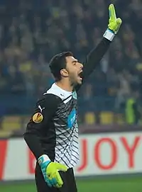 Rui Pedro dos Santos Patrício ComM (Portuguese pronunciation: [ˈʁuj pɐˈtɾisju]; born 15 February 1988) is a Portuguese professional footballer who plays as a goalkeeper for Serie A club Roma and the Portugal national team. He is often nicknamed "São Patrício" (Saint Patrício) for his saves for club and country.[6]