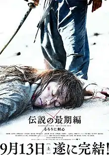Rurouni Kenshin: The Legend Ends (Japanese: るろうに剣心 伝説の最期編, Hepburn: Rurouni Kenshin: Densetsu no Saigo-hen) is a 2014 Japanese jidaigeki action film directed by Keishi Ōtomo and based on the manga series Rurouni Kenshin.[3][4][5][6] It serves as a direct sequel to Rurouni Kenshin: Kyoto Inferno (2014), taking place immediately after as Kenshin recovers following losing Kaoru at sea.