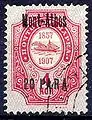 In 1909, a 50th-anniversary commemorative issue was produced by substituting the ROPiT sailing ship logo in the place of the imperial eagle. 1909 also saw the issuance of these stamps overprinted in French with the names of cities where the Russian post offices were located: "Beyrouth" - Beirut, "Constantinople" - Constantinople, "Dardanelles" - Dardanelles, "Jaffa" - Jaffa, "Jerusalem" - Jerusalem, "Kerassunde" - Giresun,"Mersine", "Mételin" - Mytilene, "Mont Athos" - Mount Athos, "Rizeh" - Rize, "Salonique" - Salonica, "Smyrne" - Smyrna, "Trebizonde" - Trabzon.