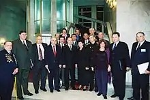 The activation and subsequent rise to power of the National Democratic Azerbaijani Popular Front Party in the early 1990s was generally met by Azerbaijan's Russian population with disbelief, although from the advent of the Armenian-Azerbaijani conflict local community organizations unanimously supported the Azerbaijan's position with regard to Nagorno-Karabakh.[10] The deterioration of the Azerbaijani-Russian relations and the ensuing anti-Russian propaganda of the Popular Front played contributed to the concern of the Russian population for its future in Azerbaijan. Although, according to the then Russian ambassador to Azerbaijan Walter Shonia, the new government did not pursue the policy of suppressing the Russian population, the press and some party leaders in their speeches supported the nationalist feelings by mentioning Russia as an ally of Armenia in the Armenian-Azerbaijani conflict and a power which sought to deprive Azerbaijan of its newfound independence.[10]