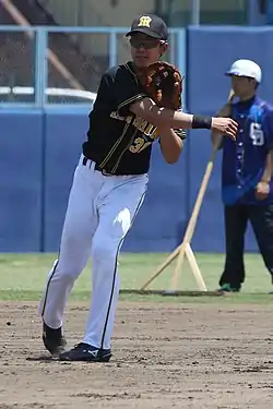 He attended Nobeoka Gakuen High School in the neighboring prefecture Miyazaki, and secured an infielder position in the school's baseball team. In his 2nd year, he batted clean up during the prefectural and Kyushu regional tournaments, and recorded 17 hits and 9 RBIs in 9 games.[3] In his senior year, he got to participate in the 2018 Spring Koshien but lost in the 1st round.[4] Despite his team not making it into the Summer Koshien tournaments that year, he was chosen to join the national team in the 2018 BFA U18 Baseball Championships where Japan placed 3rd.[1]