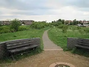 Ryhill Halt railway station in Ryhill, West Yorkshire, England was a small railway halt on the Dearne Valley Junction Railway, a branch of the Lancashire and Yorkshire Railway which connected it to the Dearne Valley Railway.[1] It was situated between Wakefield Kirkgate and Grimethorpe. It was opened for passenger traffic on 3 June 1912 and closed, along with others on the line on 10 September 1951.[2]