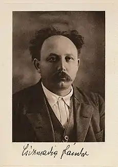Sándor Csizmadia (10 March 1871 – 3 March 1929) was a Hungarian politician and poet, who served as People's Commissar of Agriculture during the Hungarian Soviet Republic. However soon his relations decayed with the leaders of the proletarian dictatorship, so he left the Hungarian Central Executive Council. He committed suicide in 1929.