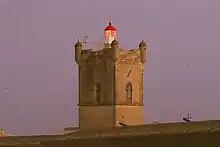 In 1933 a red lamp was installed and, at the same time, the lighthouse was connected to the electricity grid. Integrated in the telecontrol network of the approaches of the port of Lisbon, it was automated in 1980, and became remotely controlled. Together with the Bugio lighthouse it marks the entrance or exit of the Lisbon Bar, the Bugio light being green. The São Julião lighthouse is 24 metres tall, with an altitude of 39 metres.[5][6] It marks the entrance to the port of Lisbon, along with the Bugio lighthouse.[7]
