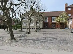 Falkonergårdens Gymnasium (No. 25) opened at the site in 1953. It had previously been located at Danas Plads.