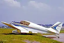 SAN had been producing the earlier Jodel D.117 under licence from which it then developed the larger 4 to 5-seat D.140.[1] The prototype D.140 registration F-BIZE first flew on 4 July 1958.[1] Early versions had a low triangular-shaped fin and rudder.