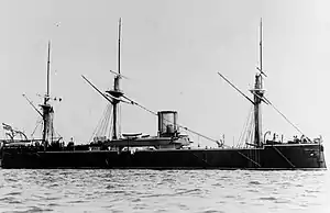 SMS Friedrich der Grosse [lower-alpha 1] (or Große [lower-alpha 2]) was an ironclad turret ship built for the German Kaiserliche Marine (Imperial Navy). She was the second of three Preussen-class ironclads, in addition to her two sister-ships Preussen and Grosser Kurfürst. Named for Frederick the Great, she was laid down at the Imperial Dockyard in Kiel in 1871 and completed in 1877. Her main battery of four 26 cm (10 in) guns was mounted in a pair of twin gun turrets amidships.