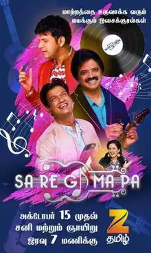 Sa Re Ga Ma Pa Tamil is an 2017 Indian-Tamil language reality singing television show, airs on Zee Tamil and streamed on ZEE5. The show based on the Hindi Language show Sa Re Ga Ma Pa. Over five years, Sa Re Ga Ma Pa has rolled out three seasons and Archana Chandhoke has continued as a host for three seasons.[1] The show serves a sequel to the 2016 shows as Sa Re Ga Ma Pa Lil Champs.