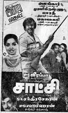 Saatchi (transl.Witness) is a 1983 Indian Tamil-language action film, directed by S. A. Chandrasekhar and produced by P. S. V. Hariharan. The film stars Vijayakanth, Viji and M. N. Nambiar. It is a remake of the 1981 Malayalam film Raktham.[1][2] The film was released on 16 September 1983.[3]