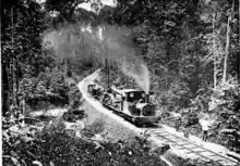 It was originally intended primarily for the transport of tobacco from the interior to the coast for export. The first line built was a 32 kilometres track from Bukau River, north to Beaufort, and south to the port of Weston.[2] This was then extended with a further 48 kilometres route in 1903 to Tenom, the works for which was completed in 1905.[1] The line was extended again in 1906 with a further 16 kilometres from Tenom to Melalap with workers brought from China.[3] At the same time as this, work began on another line from Beaufort to Jesselton (now known as Kota Kinabalu), which was completed in 1903, running mostly near or beside the coast. With the completion of these works the network routes covered some 193 kilometres.