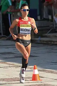 Sabrina Mockenhaupt (born 6 December 1980 in Siegen) is a German long-distance runner who specialises in track events and the marathon. She is a two-time winner of the Cologne Marathon and has also won the Frankfurt Marathon and the Berlin Half Marathon. She represented Germany at the 2004, 2008 and 2012 Summer Olympics and was the 3000 metres bronze medallist at the 2005 European Indoor Championships. She has a marathon best of 2:26:21, set at the 2010 Berlin Marathon.
