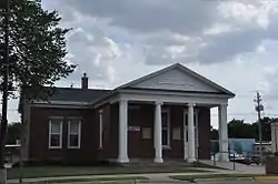 The American Legion Cantigny Post No. 195 was organized in Sac City in 1919. They bought property that overlooked Monument Square for a meeting hall and memorial, and the Neoclassical structure was completed in 1922. The Veterans of Foreign Wars (V.F.W.) Post 590 of Sac City erected the three granite tablets to commemorate the local soldiers who served in the four 20th century conflicts. The larger tablet memorializes the soldiers from World War I and World War II. The two smaller tablets commemorate the Korean and Vietnam conflicts.