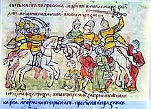 ![]() Pillaging of Kiev in 1169, miniature from the 15th-century Radziwiłł Chronicle | |||||||