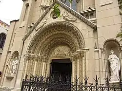 Located on Independencia Street, between Freire and Rodríguez streets, the church and the adjoining school have similar architectural styles and occupy an entire city block front. The facade is Romanesque and Gothic Revival in style, while the interior has a Gothic character.[1]