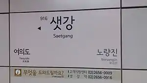 Saetgang Station is a railway station on Line 9 and the Sillim Line of the Seoul Subway.