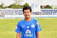 Saharat Sontisawat (Thai: สหรัฐ สนธิสวัสดิ์, born 13 January 1998) is a Thai professional footballer who plays as a defensive midfielder for Thai League 1 club Chonburi.[1]