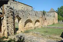 This wall is adjoined to the ruins of the cloister. There are marks of fire in its lower part. The fire could have been caused by either the Cathars in 1214 or the English in 1442 during the Hundred Years' War.
