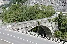 The narrow canyon at Saint-Maurice facilitated both trade and defense. The bridge over the Rhone was built around the 12th century and was the first bridge upstream of Lake Geneva after the Roman bridge of Massongex (2 km downstream Saint-Maurice). The fortifications in the canyon was gradually expanded in 1831, 1848, 1859 and finally in 1892. During the Second World War, the fortifications at Saint-Maurice were one of the three main pillars of the National Redoubt. In 1995, the fortifications were abandoned and opened as a tourist attraction. Following the army reforms of Armee 95 and XXI, the former mountain infantry military base of Saint-Maurice-Lavey has served as a training camp for the military police.[5]