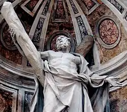 The Saint Andrew is a larger-than-life marble sculpture by Flemish artist François Duquesnoy, executed between 1629 and 1633. Located in the crossing of Saint Peter Basilica in Rome, the work depicts Andrew the Apostle leaning over the crux decussata of his martyrdom. Duquesnoy's St Andrew is one of four colossal statues beneath the dome of St. Peter, standing opposite to Bernini's less restrained Saint Longinus. The four colossi were installed in niches within the four piers supporting the dome between 1639 and 1640.[1]