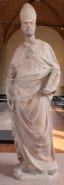 Saint Eligius is an Apuan marble statue of saint Eligius by Nanni di Banco, forming part of a cycle of fourteen patron saints of the Florentine guilds for the external niches of Orsanmichele. It was commissioned by the Arte dei Maniscalchi guild and completed around 1417–1421, although it took until around 1422 for it to be put up in its niche. That niche is now filled by a replica, with the original in the Museo di Orsanmichele.