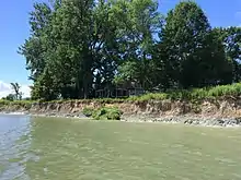 Example of banks on the island eaten away by erosion caused by the wake. The Durocher house is threatened by this erosion.