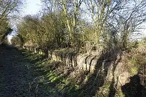 The only traces of the station are the remains of the platform, which can be seen in the undergrowth largely intact. The buildings having been cleared away in the 1950s. The trackbed is now a mud track running between fields which forms part of the Midshires Way long-distance footpath.[11]