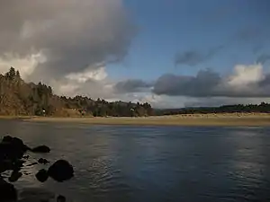 The Salmon River flows from the Central Oregon Coast Range to the Pacific Ocean coast of northwest Oregon in the United States.[2] About 24 miles (39 km) long,[4] it begins and ends in Lincoln County but also flows briefly through western Polk and southern Tillamook counties. Much of its course lies within the Siuslaw National Forest.[7]