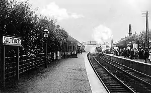 The station opened on 3 September 1888 and was simply known as Saltcoats.[1] It closed between 1 January 1917 and 1 February 1919 due to wartime economy,[1] and upon the grouping of the L&AR into the London, Midland and Scottish Railway in 1923, the station was renamed Saltcoats North on 2 June 1924.[1] The station closed to passengers on 4 July 1932,[1] however it was reopened for a time within two years when a special return fare price was introduced.[2] The line saw use for trains going to Ardrossan Montgomerie Pier and the Ardrossan Shell Mex plant until 1968.