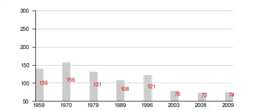 | Year | 1959 | 1970 | 1979 | 1989 | 1996 | 2003 | 2008 | 2009 |